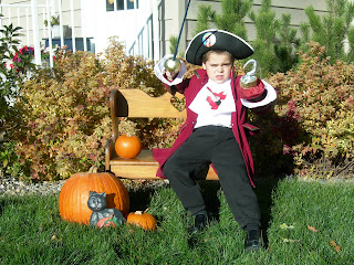 Yep, we were all characters from Disney's Peter Pan. Dustin has been gone for a week TDY to Spokane. (Which is why I wasn't able to post all last week- he had the computer.) He came home to find his costume laid out for him and he was a great sport to wear it. I made him a name tag with Smee's character on it so that he wouldn't have to explain himself. I made one for me, too. I think we were a hit as we received lots of compliments at last night's Ward Halloween party. We planned and carried out a carnival with 14 games that the kids could play. Judging by the buzz at church today, the party was a tremendous hit! Whoo-Hoo, am I glad it's over! Now we just have to start thinking about the Christmas party!