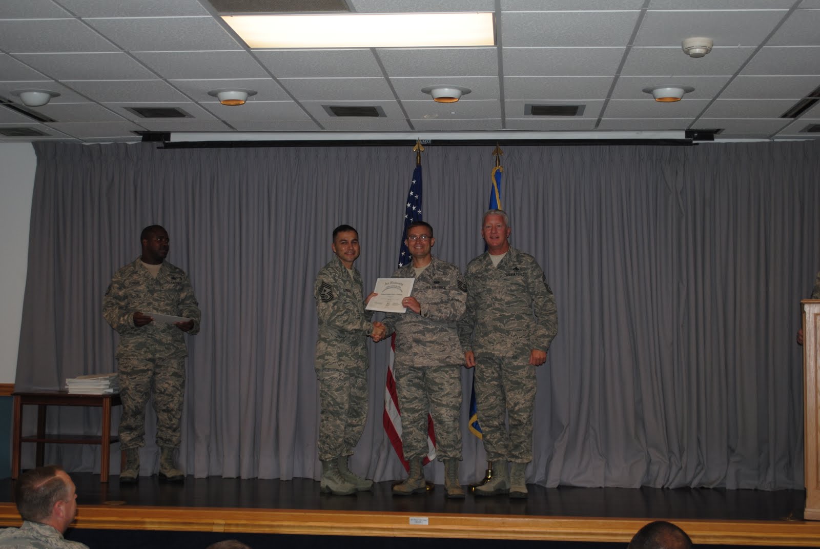 Dustin graduated from Keesler's Non Commissioned Officer Academy last week. The NCO Academy is a required course for every Tech Sgt. hoping to make Master Sgt. Most people travel here TDY and stay in the dorms. It's a 6 week long course in leadership, public speaking, Air Force history, and military customs and procedures. Dustin did a great job, especially considering he had major distractions like family, regular work duties, and church work that his classmates left behind at their home bases. Dustin even scored the highest grade of the entire school on the final examination by only missing one question. We are so proud of Dad and are excited to have him done with studying for a little while!