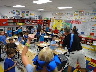 North Bay Elementary was named a National Blue Ribbon High Performing school by the US Dept. of Education! We are so proud of all the children and staff. We absolutely LOVE this school. They made the announcement yesterday with a big school wide party having asked all the children to wear blue for Friday. Coach Pugh, one of our favorite guys ever, came out of retirement for the big day, too. These photos were posted on the district website and I swiped them! There were only 2 schools in Mississippi to earn this distiction. We are so happy that we made the effort to find a school for the boys that we felt good about. Days like these help us know it's the right thing for our family to pay tuition for public education. We know they are in good hands!